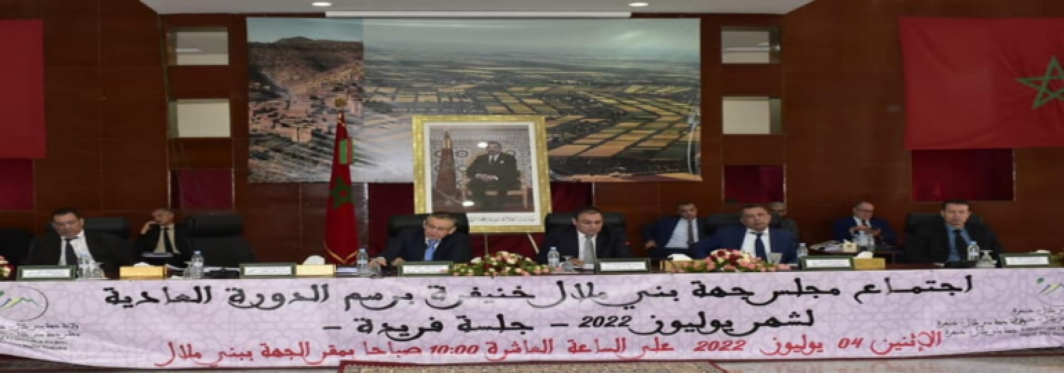عقد مجلس جهة بني ملال-خنيفرة يومه الاثنين 04 يوليوز 2022 على الساعة العاشرة صباحا بقاعة الاجتماعات بمقر الجهة ببني ملال، أشغال دورته العادية لشهر يوليوز 2022 ، تحت رئاسة السيد عادل البراكات رئيس مجلس الجهة، إلى جانب السيد والي جهة بني ملال-خنيفرة و عمال عمالات وأقاليم الجهة، وبحضور أغلبية السادة أعضاء المجلس، و مدراء المصالح اللاممركزة، و رجال الإعلام وموظفي إدارة الجهة، ورؤساء الهيئات الاستشارية التابعة لمجلس الجهة.